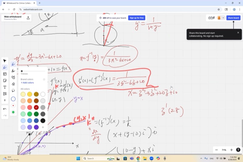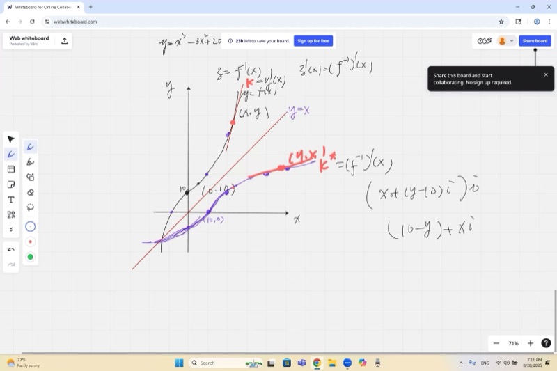 - Take the reciprocal: \((f^{-1})'(28) = \frac{1}{f'(a)}\)