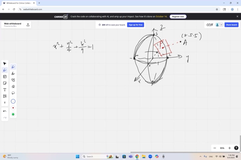 Goal: Find the point on the ellipsoid closest to \(A = (5, 5, 5)\).