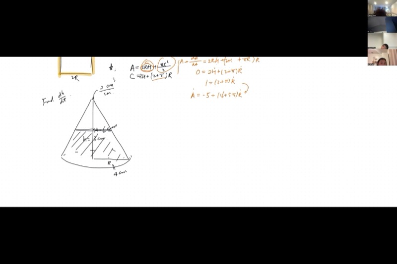 - Multi-variable related rates: French window (rectangle + semicircle) with a constant-circumference constraint