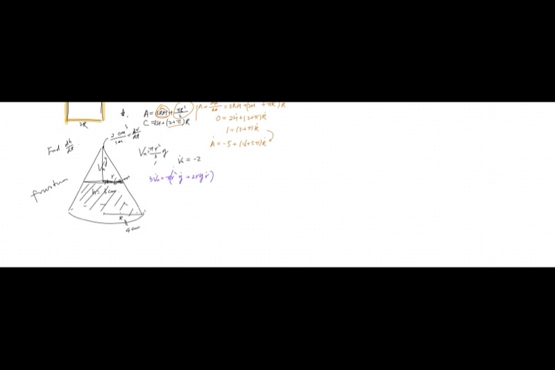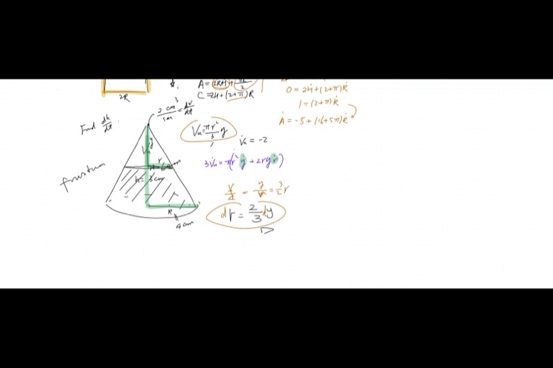 - Cone/frustum water-filling problems using similar triangles to eliminate variables